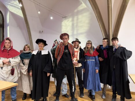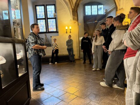Wyjazd do Wrocławia był bardzo ciekawy i pouczający. W Muzeum Miejskim Wrocławia poznaliśmy karę hańby oraz wymiar sprawiedliwości z czasów średniowiecza. Wzięliśmy również udział w inscenizowanej rozprawie sądowej, ubrani w kostiumy z tamtej epoki. Następnie odwiedziliśmy Jarmark Bożonarodzeniowy we Wrocławiu, który jest uznawany za jeden z najpiękniejszych w Europie. Był pełen światełek, zapachów i świątecznej muzyki, idealny na magiczną, przedświąteczną podróż. Jarmark odbywa się na Rynku i okolicznych placach, w okresie adwentu, a w centrum rynku podziwialiśmy okazałą, świąteczną choinkę.
